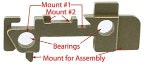 Bronze Bearings Don’t Have To Be Simple Round SleevesThe Challenge: An office equipment manufacturer needed to be able to place two bearings in a piece of equipment in close proximity to other parts. The problem was that the bearings were too small to hold enough oil to lubricate the bearings for the entire life of the product. The Solution: Perry Tool designed a part that combined the two bearings and the three other parts that attached to the bearings into one single part. With this design, the whole part can be impregnated with oil. In addition, the two bearings were designed to maintain their close center distance tolerances. The part also facilitates the attachment of two other sheet metal pieces. The Results: Combining multiple part functionality into a single part reduced both the material cost and the inventory cost of the individual parts and saved the manufacturer assembly costs as well. |